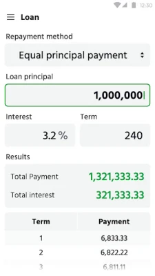 • Easily track your loan bills by inputting interest and principal for equal principal, equal installments, etc.