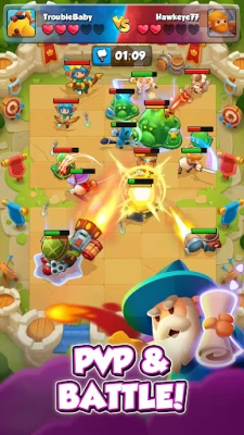 This game is focused on PvP - epic battles await you in this multiplayer strategy. Real-time PvP mode allows you to fight other players, each with their own experience. This is a real challenge at deck building, strategic thinking and tactical mastery, where only the best may ascend to the heights of glory. Conquer new Arenas to advance and reap valuable rewards!