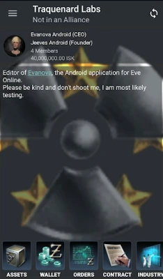 Evanova is the most complete Android application for managing your Eve Online characters, corporations, fittings or other Eve Online information.