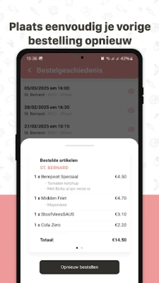 Een app met talloze functies en voordelen: - Overzichtelijk Kies waar je zin in hebt, wanneer je wil en waar je ook bent. Neem rustig de tijd om de menukaart te bekijken, vul je winkelmandje en plaats je bestelling. - Plan vooruit Plan jij graag vooruit? Wees zeker van je zaak en bestel met onze app moeiteloos voor een latere datum. - Vlot & eenvoudig Via de favorieten functie of je bestelgeschiedenis ben je slechts enkele vingerdrukken verwijderd van een nieuwe bestelling. Echt handig! - Doe je voordeel Ontdek nieuwe producten en geniet van kortingen of extra’s dankzij onze couponcodes. Er zit vast en zeker ook een deal voor jou tussen! Download de app en ontdek hem!
