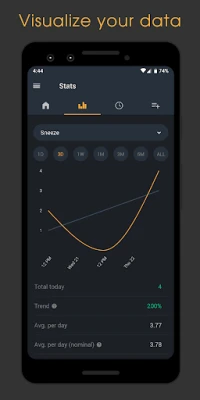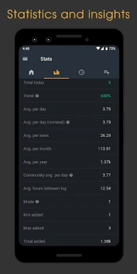 * Statistics - Get insights into your data, such as the average per day, time between logs, most common logs and much more.