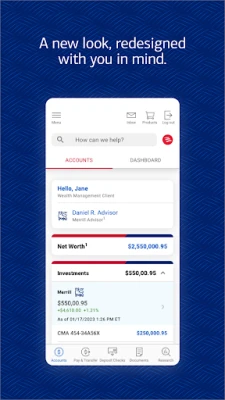 • View activity on your Bank of America, N.A., credit card and banking accounts
