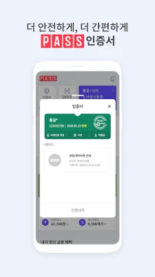 - PASS 인증서: 전자서명인증사업권을 획득한 인증서로 더 안전하게, 더 간편하게 사용할 수 있습니다.