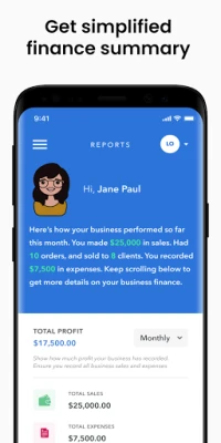 • Track your business performance. Review your Sales, Profit, and Loss reports, etc.